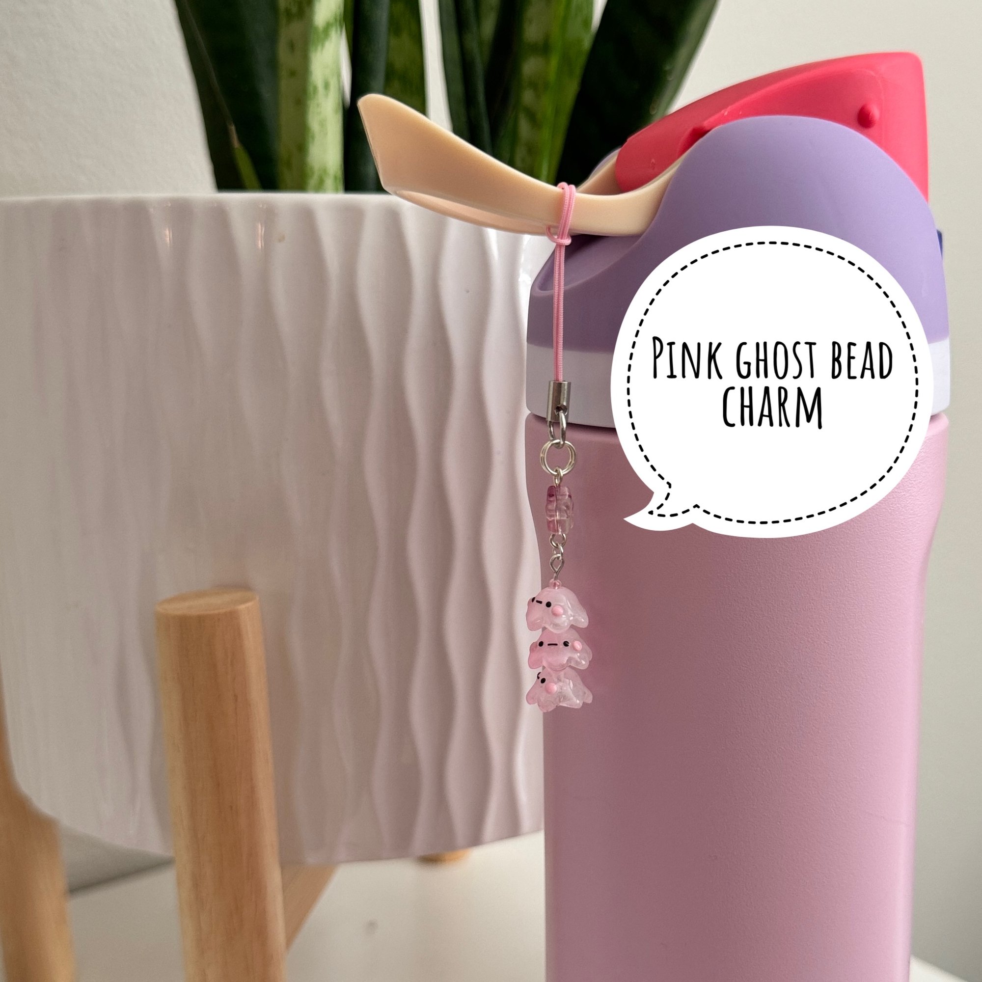 Pink Triple Stack Ghost Bead Phone Strap & Charm